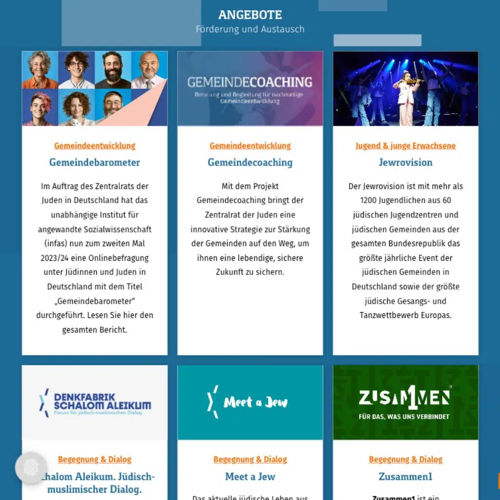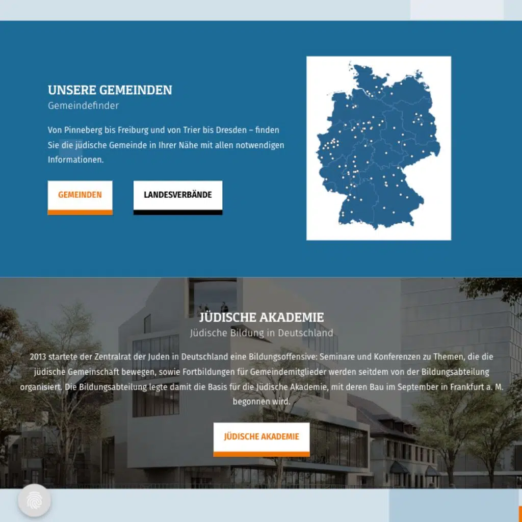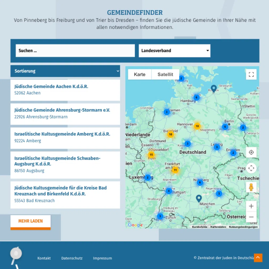 The new website of the ZDJ offers comprehensive information on projects, offers, news and interesting facts about the Central Council of Jews in Germany. A special highlight is the geo-referenced community administration including filter options.