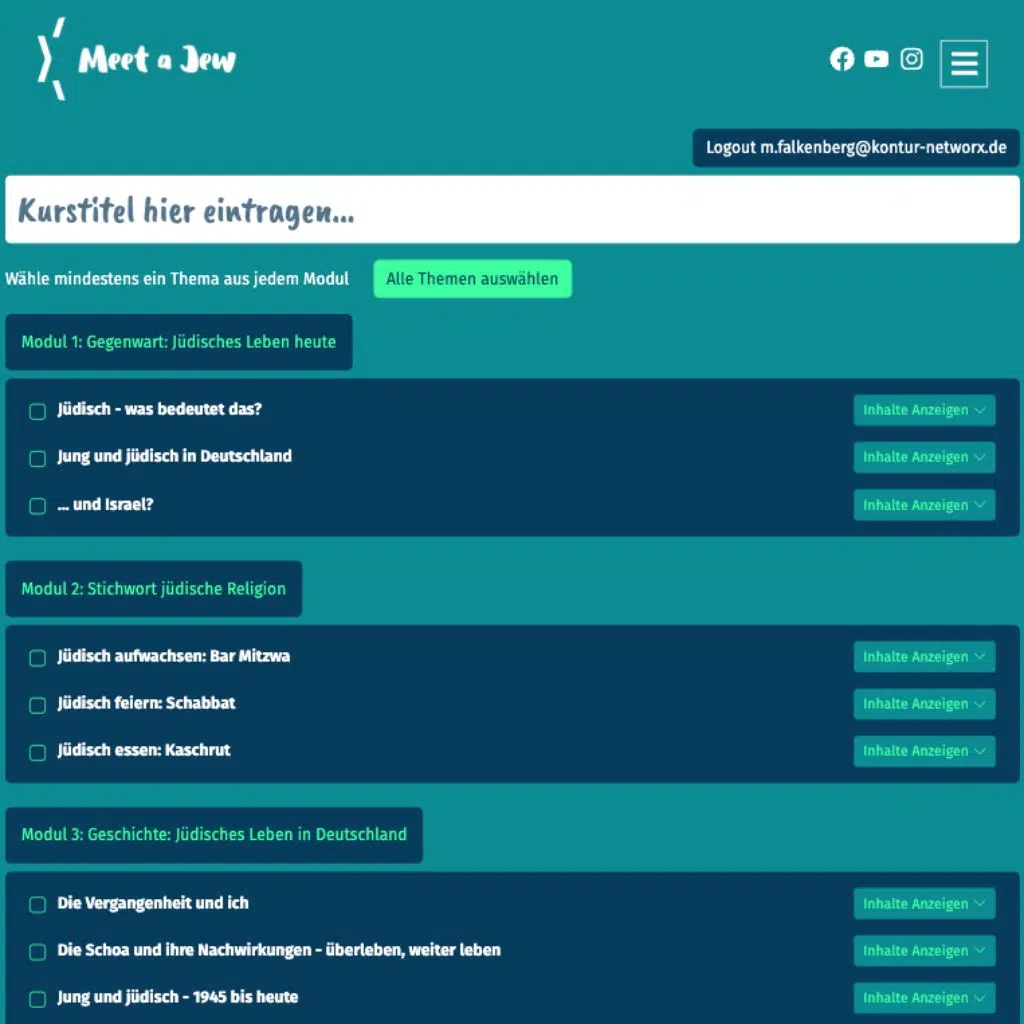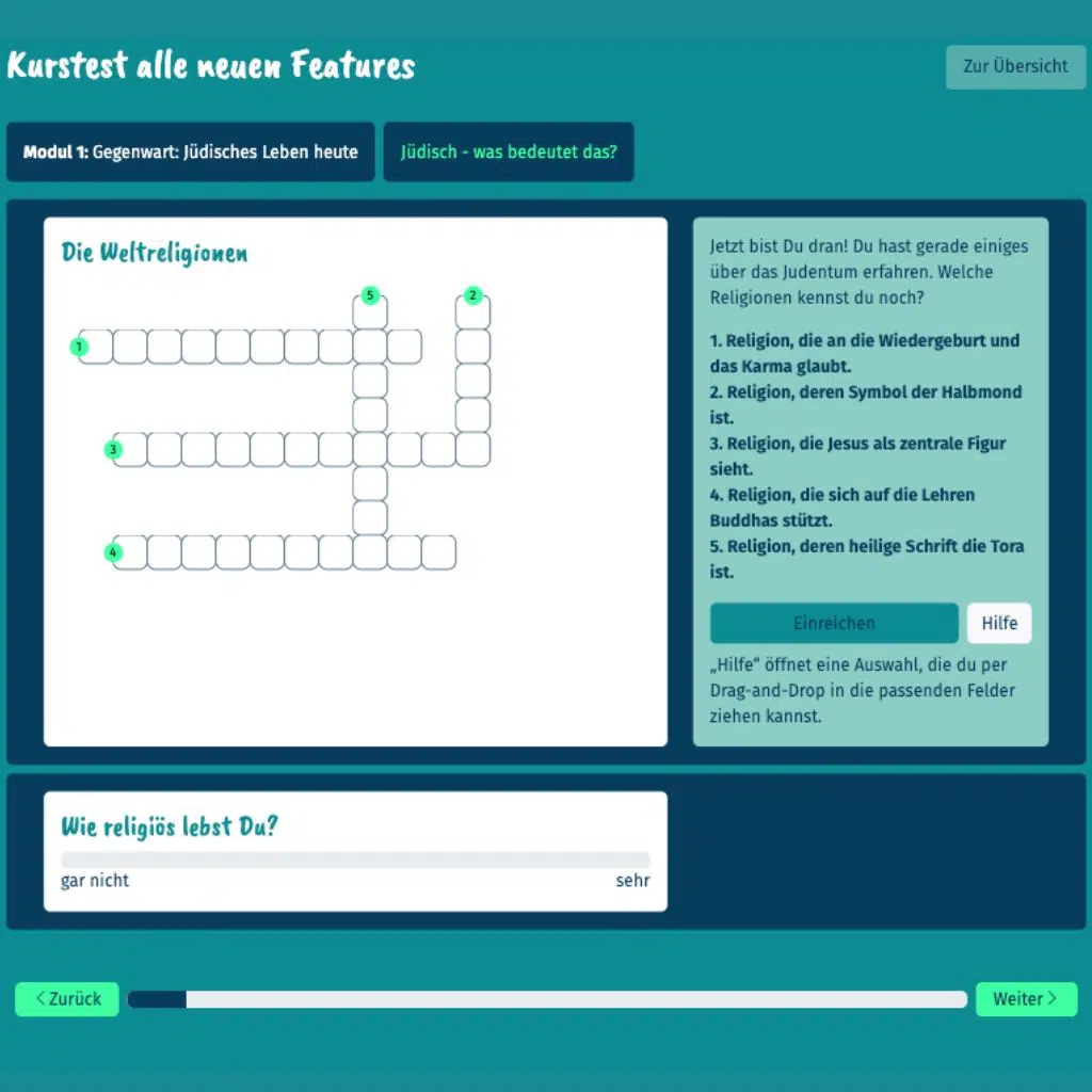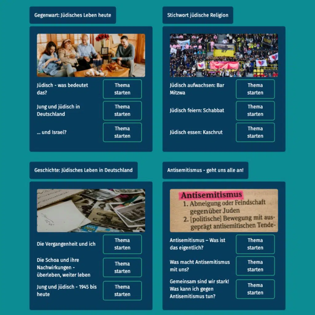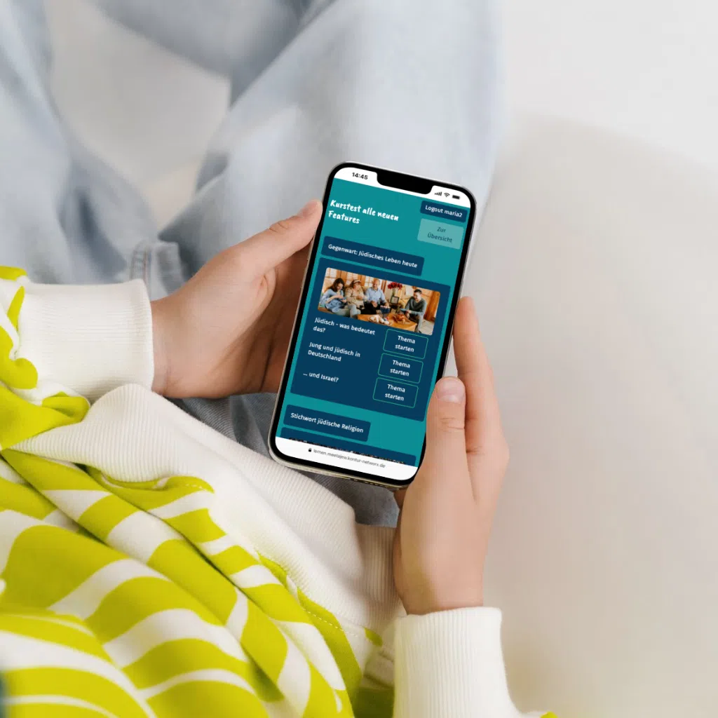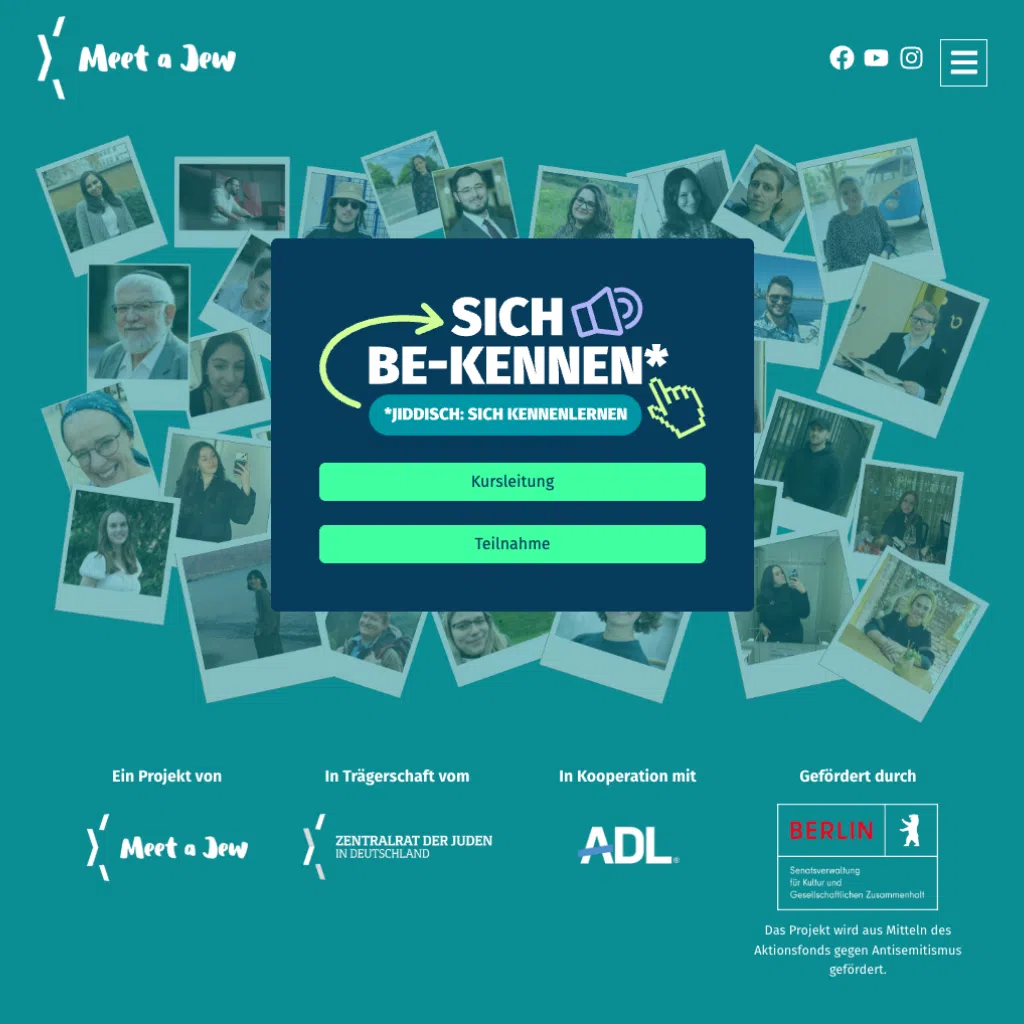“Talking to each other instead of about each other” – The modular learning platform Meetajew is a project of the Central Council of Jews in Germany. Sich be-kennen* is an online course about Jewish life in Germany in which Jews tell their own stories. In four modules, participants can playfully listen to stories & test their knowledge in interactive puzzles.